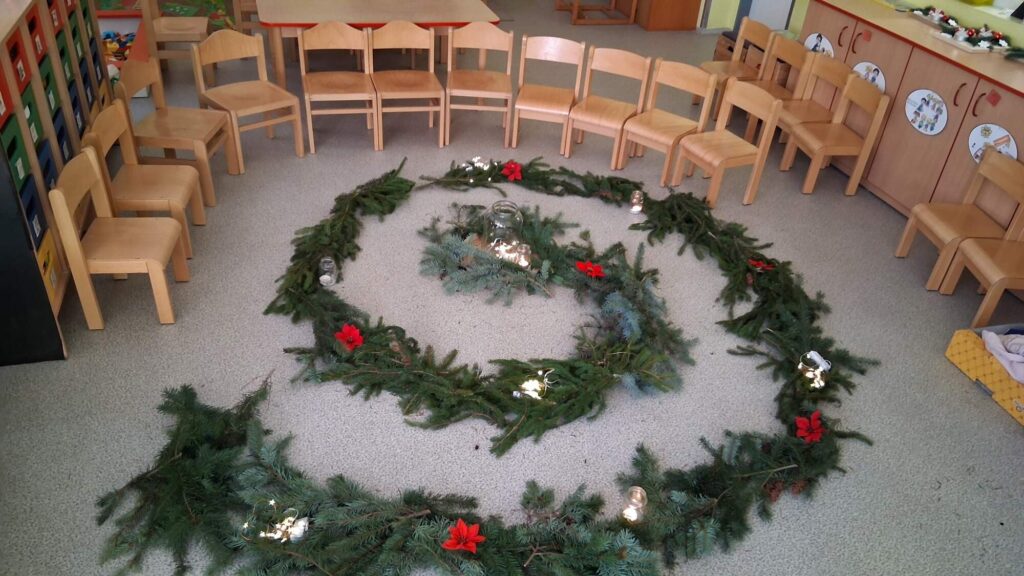 Období plné očekávání a příprav na příchod Ježíška, přišlo i do MŠ Mirošov. Děti se pilně připravovaly na vystoupení u Vánočního stromu na náměstí, kde zazpívaly několik písní, popřály všem přítomným krásnou adventní neděli. Ve třídě se seznamovaly s adventní dobou, s významem čtyř týdnů před Vánocemi, ozdobily si společně adventní věnec a vydaly se na pouť adventní spirálou. Spirála byla vyskládána z chvojí, rozzářená světlem svíček, doprovázená hudbou a vedla děti až do svého středu, kde říkaly svá přání pro Ježíška. Pocit přátelství, sounáležitosti, klidu a radosti, byl v tu chvíli cítit na každém kroku.