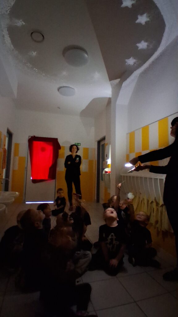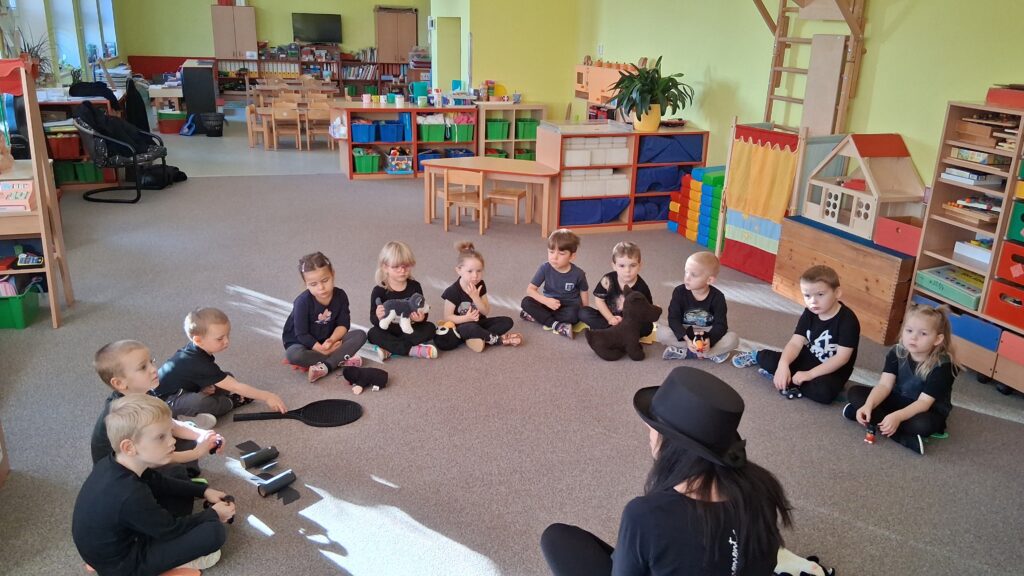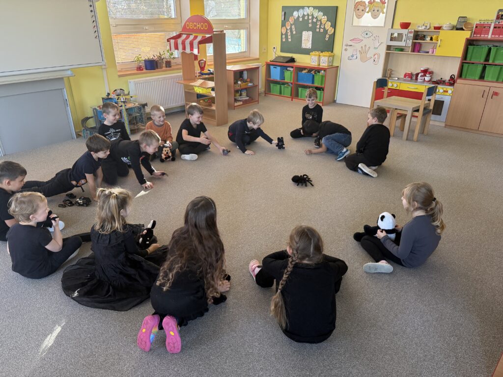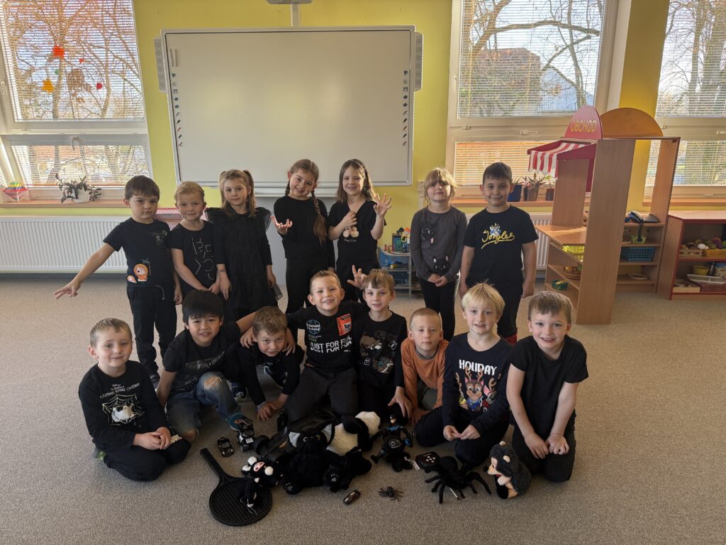 V naší školce jsme se v rámci Barevného roku pustili do další barvy, a to tentokrát černé. Ač je černá temná, tichá a všudypřítomná, stala se dalším společným dobrodružstvím v Mš. Děti přišly do třídy oblečené v černém oblečení, hledaly ve třídách, co všechno má černou barvu. Uspořádaly tradiční výstavu hraček a věcí z domova, které představily své třídě. Děti si vytvořily hvězdné nebe, které pak prosvítily baterkou a prostor se proměnil v kouzelnou zahradu plnou světel. Děti tak zjistily, že i ve tmě můžeme najít světlo, stačí jen zdvihnout hlavu k nebi a pořádně se rozhlédnout. Barevný den dokreslilo jídlo z černé čočky a muffiny od paních kuchařek, které si děti za odměnu odnesly s sebou domů. Celý den byl pro děti příležitostí nejen objevovat další barvu, ale také překonat obavy ze tmy. A to se podařilo.