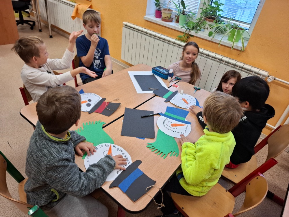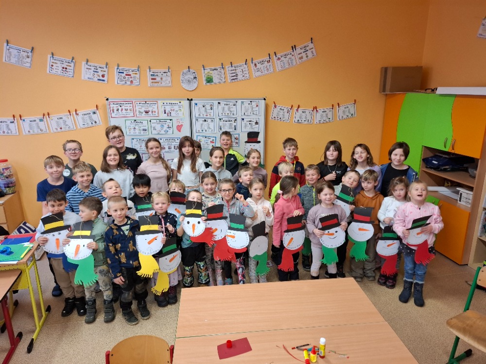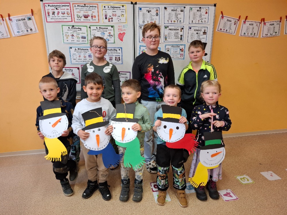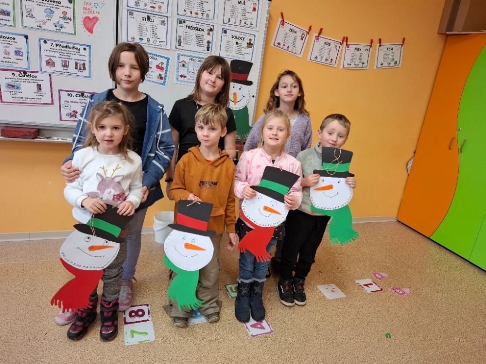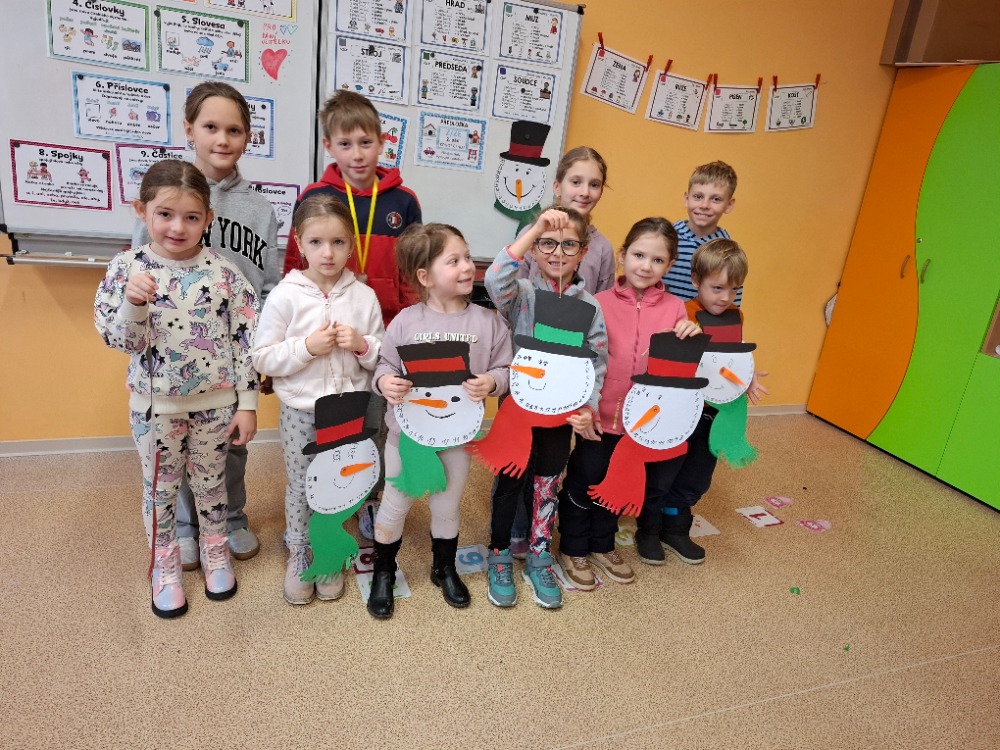 Do naší základní školy zavítalo 35 budoucích prvňáčků z mateřské školy, aby si společně s žáky pátých tříd vyrobili krásné adventní kalendáře ve tvaru sněhuláků. Během tvoření se malí školáčci seznámili nejen se svými budoucími učitelkami, ale také se staršími spolužáky, kteří jim ochotně pomáhali a ukázali se jako skvělí pomocníci.