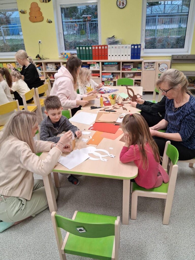 Mateřská škola se v těchto dnech proměnila v místo plné tvořivosti, radosti a milých setkání. Tradiční jarní dílny otevřely své dveře nejen dětem, ale i jejich rodičům a sourozencům, kteří společně strávili příjemné odpoledne při tvoření, sdílení i ochutnávání dobrot. V prostorách školky vzniklo několik tematických stanovišť, kde si návštěvníci mohli vyzkoušet rozmanité výtvarné aktivity s jarní a velikonoční tematikou. Děti spolu s rodiči vyráběly dekorace z různorodých materiálů. Nechybělo lepení, stříhání ani oblíbené motání provázků na vajíčka. Do tvoření se s nadšením zapojili i starší sourozenci, kteří ochotně pomáhali mladším dětem a přispívali k příjemné atmosféře. Součástí odpoledne bylo také malé občerstvení, které připravily paní kuchařky. Návštěvníci si mohli pochutnat nejen na tradičním velikonočním mazanci, ale také na domácím chlebu s různými pomazánkami. Společné posezení u dobrého jídla vytvořilo prostor pro neformální rozhovory a sdílení zážitků mezi rodiči i pedagogy. Jarní dílny se opět ukázaly jako krásná příležitost k setkání a prohloubení spolupráce mezi mateřskou školou a rodinami dětí. Přátelská atmosféra a společně strávený čas potvrdily, jak důležitá je vzájemná komunikace a zapojení rodičů do života školy. Děkujeme všem, kteří se na této milé akci podíleli, a těšíme se na další společná setkání.