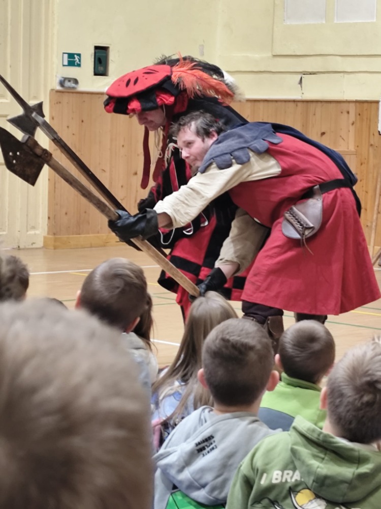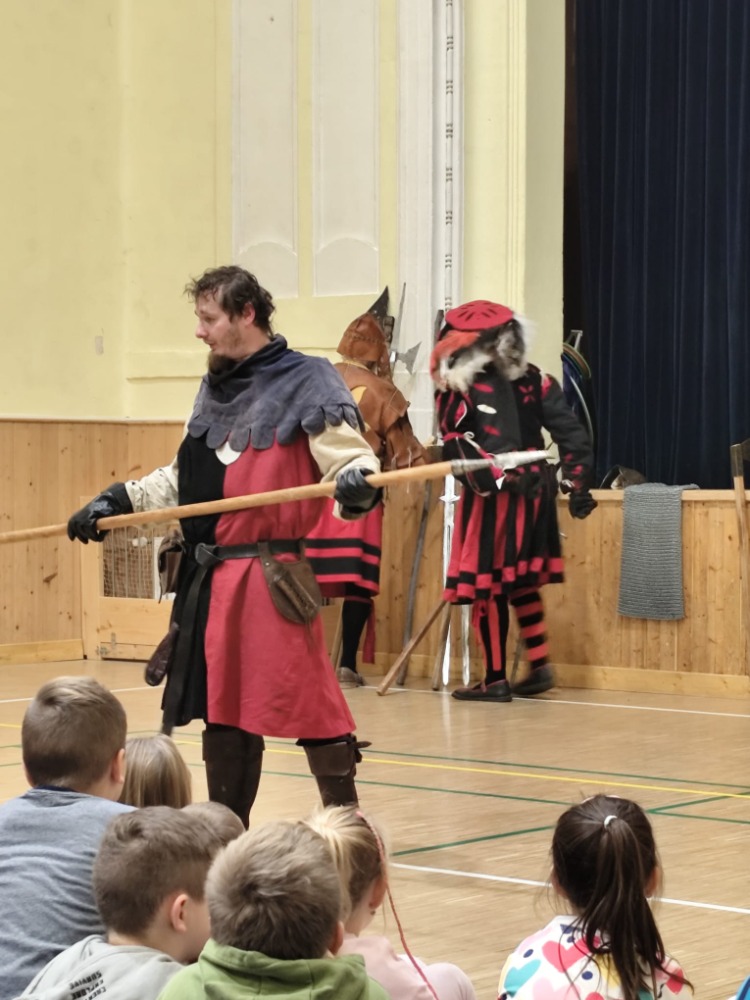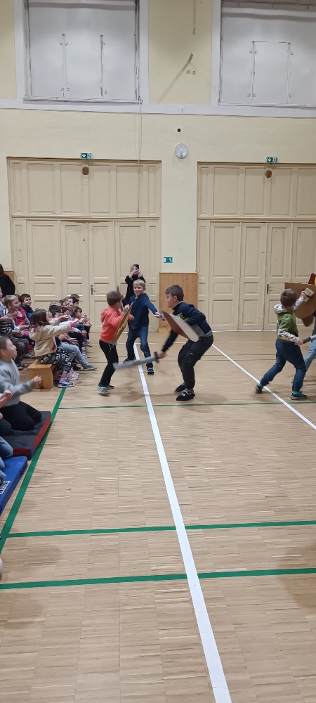 Dne 27.11. jsme měli možnost shlédnout přestavení Šermířského a divadelního spolku Harcíři z Rokycan. Na začátku programu jsme mohli vidět zbraně, které se vážou do daleké historie. O dost zajímavější byly jednotlivé scénky, při kterých byly zbraně použity. Žáci byli do programu aktivně zapojeni a mohly si vyzkoušet některé prvky šermířského umění. Atmosféra byla velmi přátelská a celé vystoupení přineslo nejen nové poznatky, ale hlavně zábavu, kterou si děti moc užily. Vystoupení bylo pro děti příjemným zpestřením.